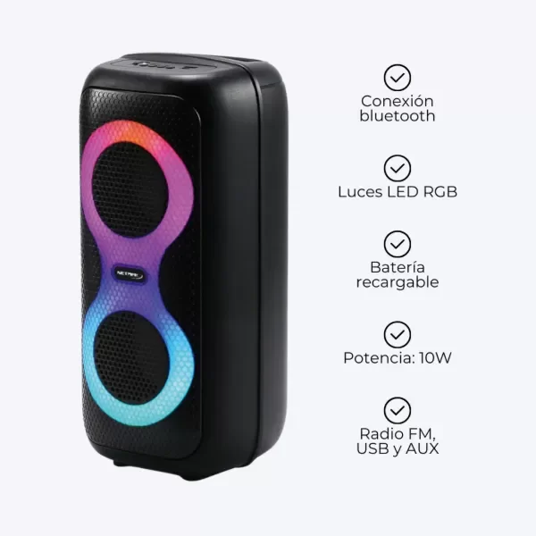 Nombre del producto: Parlante Portátil Bluetooth Con Luces Rgb Radio Fm Usb Aux