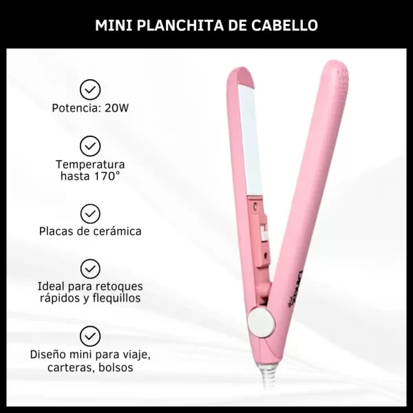 Con esta mini planchita, lucir un cabello liso y cuidado es más fácil que nunca. Es tan pequeña que entra sin problemas en cualquier bolso de viaje o cartera. Perfecta para alisar mechones pequeños, flequillos o eliminar el frizz de forma rápida y segura.