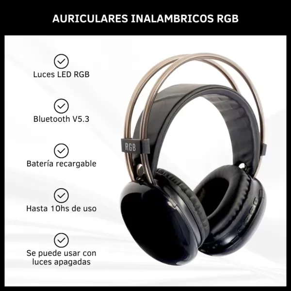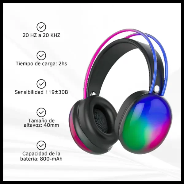 AURICULARES GAMER INALÁMBRICOS LUZ RGB