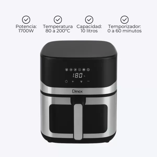 La solución perfecta para disfrutar de comidas deliciosas y saludables. Con su pantalla táctil digital, tendrás un control total sobre el proceso de cocción. Su superficie antiadherente y la facilidad de limpieza hacen que sea un electrodoméstico ideal para el uso diario. Con funciones versátiles como freír, asar, hornear y tostar, esta freidora de aire es un aliado indispensable para quienes buscan una alimentación más saludable sin sacrificar el sabor.