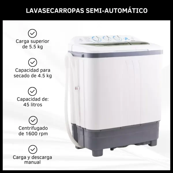 LAVASECARROPAS SEMI-AUTOMATICO CON CENTRIFUGADO 1600 RPM DE 5,5KG.