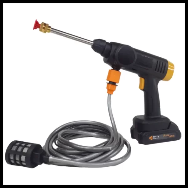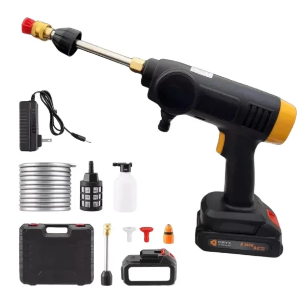 Esta hidrolavadora inalámbrica combina diseño liviano y alto rendimiento para facilitar cualquier tarea de limpieza. Con solo 580 g de peso y una batería recargable de litio, ofrece total movilidad sin depender de cables. Su potencia de 240W, presión de hasta 4.8 MPa y flujo de agua de 1.5 a 3 L/min garantizan una limpieza efectiva en patios, autos, bicicletas y más. Fabricada en material ABS resistente y con conexión de agua a rosca, es práctica, compacta y lista para usar donde la necesites.