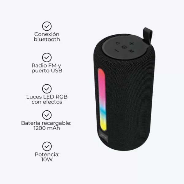 Disfrutá tu música donde quieras con este parlante portátil inalámbrico. Su conexión Bluetooth te permite reproducir tus canciones sin cables, mientras que la radio FM y el puerto USB amplían tus opciones de entretenimiento. Con batería recargable, es perfecto para llevar a reuniones, viajes o usar en casa y disfrutar de tu música favorita en todo momento.