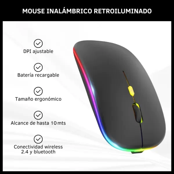 Este mouse inalámbrico es perfecto para tu rutina diaria, ya sea en el trabajo o para estudiar. Con su doble conexión podés usarlo en cualquier dispositivo sin complicaciones. Además, ahorrás en pilas ya que es recargable.