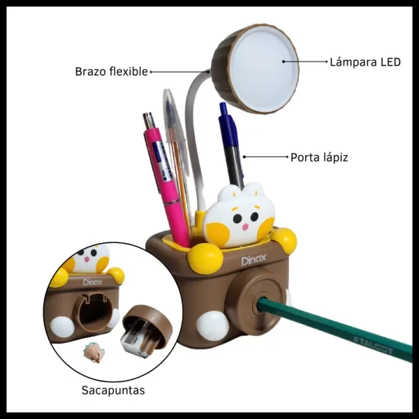 • Funciona como portalápices y sacapuntas.