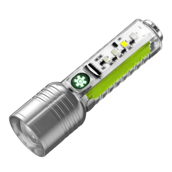 - 6 modos de iluminación LED: fija, baja intensidad, intermitente, blanca lateral, led RGB roja y azul intermitentes, ultravioleta.